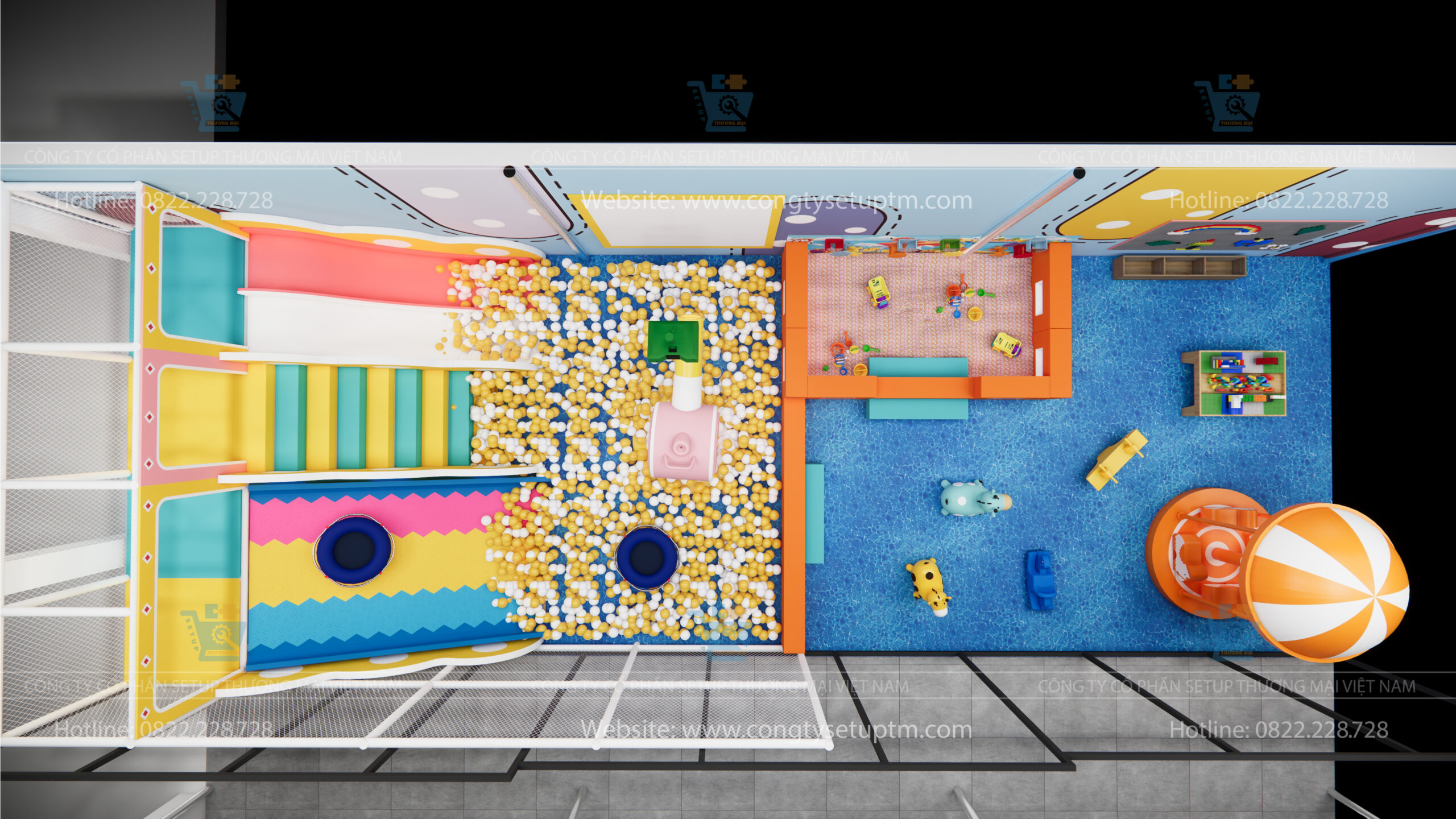 Thiết kế khu vui chơi trẻ em không chỉ là một khu vui chơi trong nhà đơn thuần, mà còn là một thế giới tuổi thơ thu nhỏ – nơi trẻ em được là chính mình, được học, chơi và lớn lên trong tình yêu thương, sự an toàn và sáng tạo. Với sự đồng hành của Setup Thương Mại Việt Nam, nơi đây chắc chắn sẽ trở thành điểm đến quen thuộc và yêu thích của các gia đình có con nhỏ.
